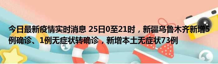 今日最新疫情实时消息 25日0至21时,新疆乌鲁木齐新增5例确诊、1例无症状转确诊,新增本土无症状73例