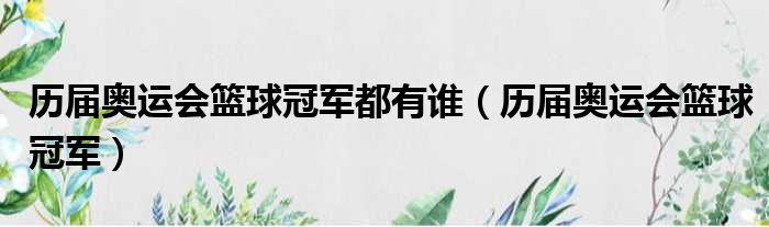 历届奥运会篮球冠军都有谁(历届奥运会篮球冠军)