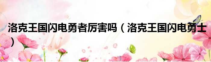 大家好,今天小六子来为大家解答以下的问题,关于洛克王国闪电勇者厉害吗,洛克王国闪电勇士这个很多人还不知道,现在让我们一起来看看吧!
