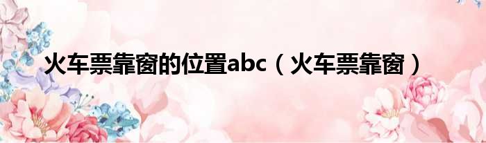 导读 大家好,今天小六子来为大家解答以下的问题,关于火车票靠窗的位置abc,火车票靠窗这个很多人还不知道,现在让我们一起来看看吧!1、普通旅