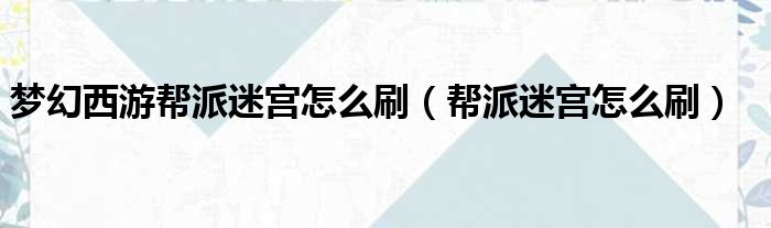 梦幻西游帮派迷宫怎么刷(帮派迷宫怎么刷)