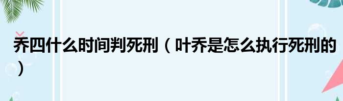 乔四什么时间判死刑(叶乔是怎么执行死刑的)