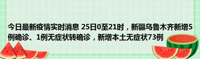 今日最新疫情实时消息 25日0至21时,新疆乌鲁木齐新增5例确诊、1例无症状转确诊,新增本土无症状73例