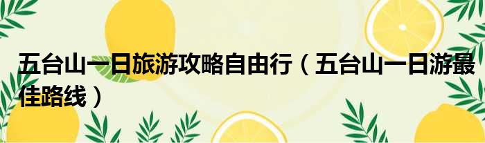 导读 大家好,今天小六子来为大家解答以下的问题,关于五台山一日旅游攻略自由行,五台山一日游最佳路线这个很多人还不知道,现在让我们一起来看