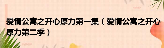 导读 大家好,今天小六子来为大家解答以下的问题,关于爱情公寓之开心原力第一集,爱情公寓之开心原力第二季这个很多人还不知道,现在让我们一起