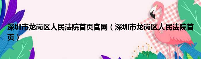 深圳市龙岗区人民法院首页官网(深圳市龙岗区人民法院首页)