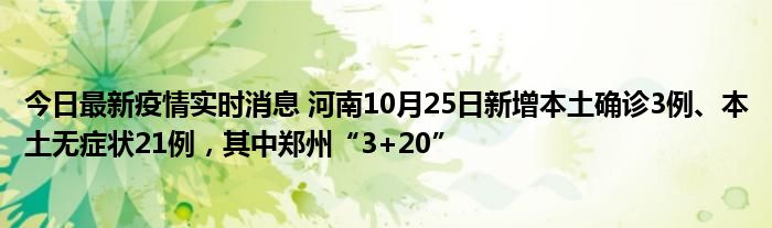 河南卫健委通报,10月25日0—24时,全省新增本土确诊病例3例(郑州市3例,其中1例为隔离管控发现、2例为重点人群筛查发现)新增本土无症