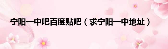 宁阳一中吧百度贴吧(求宁阳一中地址)