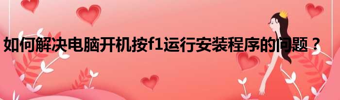 导读 大家好,今天小六子来为大家解答以下的问题,关于如何解决电脑开机按f1运行安装程序的问题?这个很多人还不知道,现在让我们一起来看看吧!1