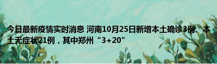 今日最新疫情实时消息 河南10月25日新增本土确诊3例、本土无症状21例,其中郑州“3+20”