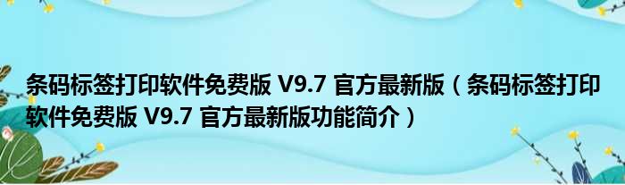 条码标签打印软件免费版 V9.7 官方最新版(条码标签打印软件免费版 V9.7 官方最新版功能简介)