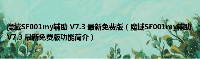 魔域SF001my辅助 V7.3 最新免费版(魔域SF001my辅助 V7.3 最新免费版功能简介)