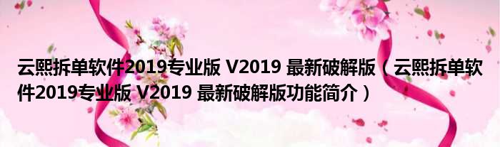 云熙拆单软件2019专业版 V2019 最新破解版(云熙拆单软件2019专业版 V2019 最新破解版功能简介)