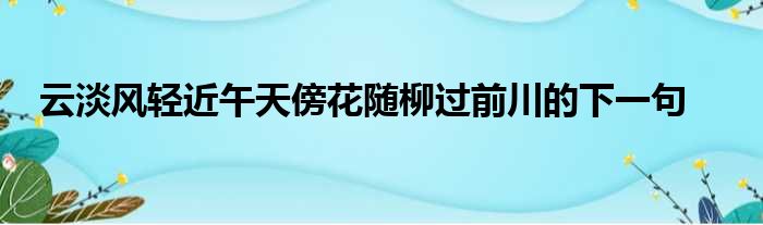 大家好,今天小六子来为大家解答以下的问题,关于云淡风轻近午天傍花随柳过前川的下一句这个很多人还不知道,现在让我们一起来看看吧!