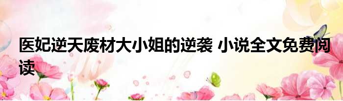 大家好,今天小六子来为大家解答以下的问题,关于医妃逆天废材大小姐的逆袭 小说全文免费阅读这个很多人还不知道,现在让我们一起来看看吧!