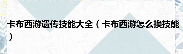 卡布西游遗传技能大全(卡布西游怎么换技能)