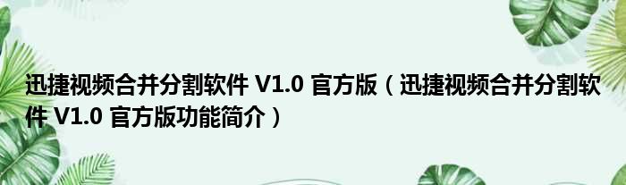 迅捷视频合并分割软件 V1.0 官方版(迅捷视频合并分割软件 V1.0 官方版功能简介)