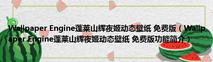 导读 大家好,关于Wallpaper Engine蓬莱山辉夜姬动态壁纸 免费版,Wallpaper Engine蓬莱山辉夜姬动态壁纸 免费版功能简介这个很多人还不知道,