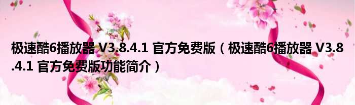 导读 大家好,关于极速酷6播放器 V3 8 4 1 官方免费版,极速酷6播放器 V3 8 4 1 官方免费版功能简介这个很多人还不知道,小勒来为大家解答以上