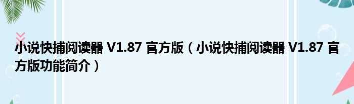 小说快捕阅读器 V1.87 官方版(小说快捕阅读器 V1.87 官方版功能简介)