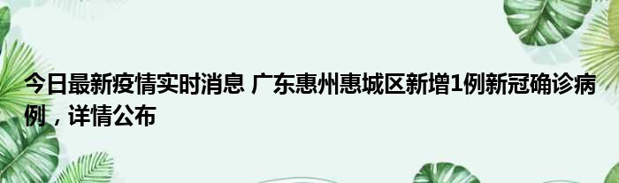 今日最新疫情实时消息 广东惠州惠城区新增1例新冠确诊病例,详情公布