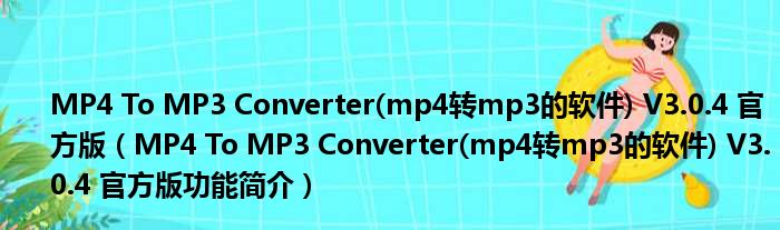 MP4 To MP3 Converter(mp4转mp3的软件) V3.0.4 官方版(MP4 To MP3 Converter(mp4转mp3的软件) V3.0.4 官方版功能简介)