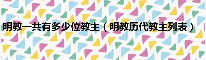 大家好,今天小六子来为大家解答以下的问题,关于明教一共有多少位教主,明教历代教主列表这个很多人还不知道,现在让我们一起来看看吧!
