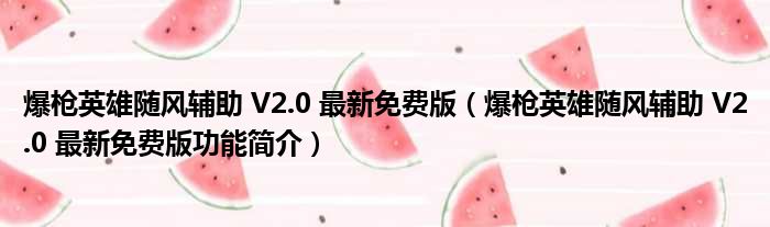 爆枪英雄随风辅助 V2.0 最新免费版(爆枪英雄随风辅助 V2.0 最新免费版功能简介)