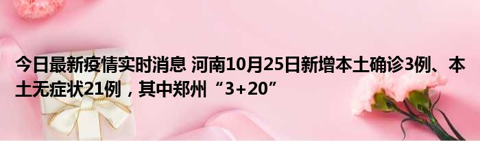 今日最新疫情实时消息 河南10月25日新增本土确诊3例、本土无症状21例,其中郑州“3+20”