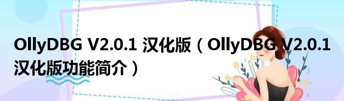 OllyDBG V2.0.1 汉化版(OllyDBG V2.0.1 汉化版功能简介)