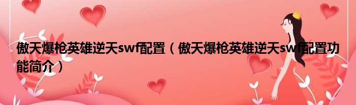 傲天爆枪英雄逆天swf配置(傲天爆枪英雄逆天swf配置功能简介)