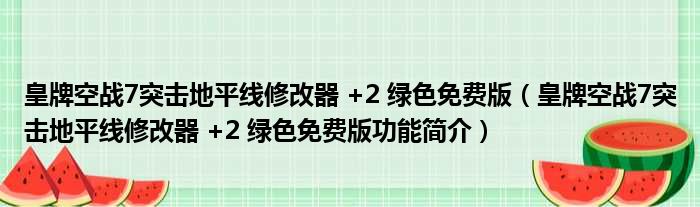 皇牌空战7突击地平线修改器 +2 绿色免费版(皇牌空战7突击地平线修改器 +2 绿色免费版功能简介)