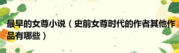 最早的女尊小说(史前女尊时代的作者其他作品有哪些)