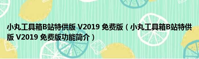 导读 大家好,关于小丸工具箱B站特供版 V2019 免费版,小丸工具箱B站特供版 V2019 免费版功能简介这个很多人还不知道,小勒来为大家解答以上的