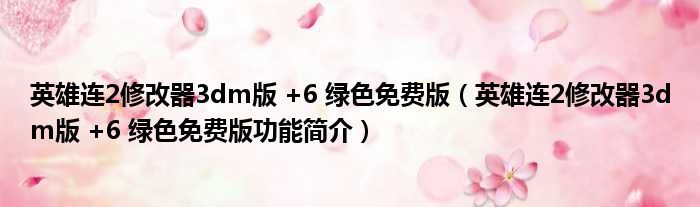 英雄连2修改器3dm版 +6 绿色免费版(英雄连2修改器3dm版 +6 绿色免费版功能简介)