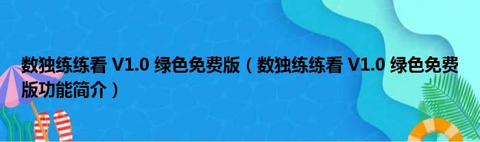 数独练练看 V1.0 绿色免费版(数独练练看 V1.0 绿色免费版功能简介)