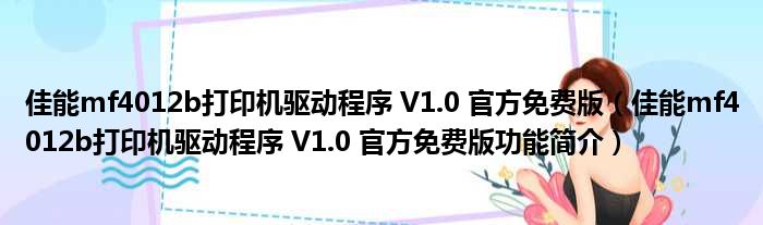 佳能mf4012b打印机驱动程序 V1.0 官方免费版(佳能mf4012b打印机驱动程序 V1.0 官方免费版功能简介)