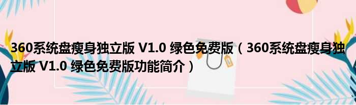 导读 大家好,关于360系统盘瘦身独立版 V1 0 绿色免费版,360系统盘瘦身独立版 V1 0 绿色免费版功能简介这个很多人还不知道,小勒来为大家解答