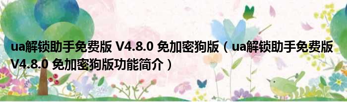 ua解锁助手免费版 V4.8.0 免加密狗版(ua解锁助手免费版 V4.8.0 免加密狗版功能简介)