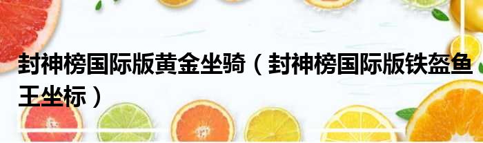 导读 大家好,今天小六子来为大家解答以下的问题,关于封神榜国际版黄金坐骑,封神榜国际版铁盔鱼王坐标这个很多人还不知道,现在让我们一起来看