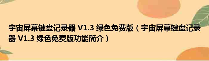 宇宙屏幕键盘记录器 V1.3 绿色免费版(宇宙屏幕键盘记录器 V1.3 绿色免费版功能简介)