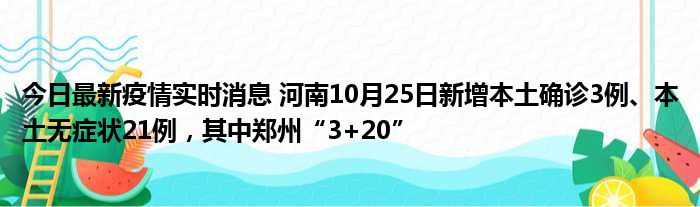 今日最新疫情实时消息 河南10月25日新增本土确诊3例、本土无症状21例,其中郑州“3+20”