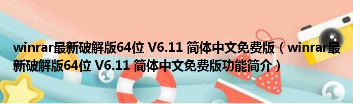 winrar最新破解版64位 V6.11 简体中文免费版(winrar最新破解版64位 V6.11 简体中文免费版功能简介)