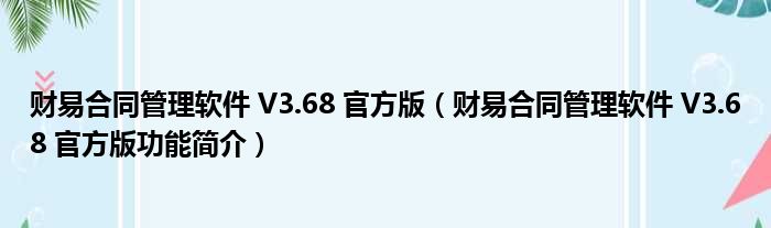 财易合同管理软件 V3.68 官方版(财易合同管理软件 V3.68 官方版功能简介)