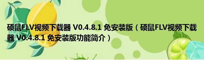 硕鼠FLV视频下载器 V0.4.8.1 免安装版(硕鼠FLV视频下载器 V0.4.8.1 免安装版功能简介)