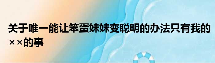 关于唯一能让笨蛋妹妹变聪明的办法只有我的××的事