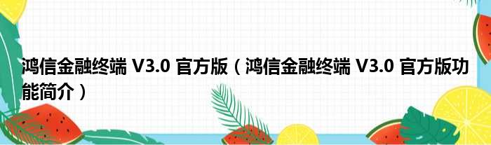 鸿信金融终端 V3.0 官方版(鸿信金融终端 V3.0 官方版功能简介)