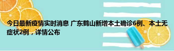 今日最新疫情实时消息 广东鹤山新增本土确诊6例、本土无症状2例,详情公布