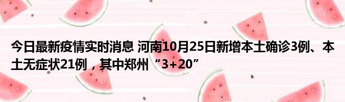 今日最新疫情实时消息 河南10月25日新增本土确诊3例、本土无症状21例,其中郑州“3+20”