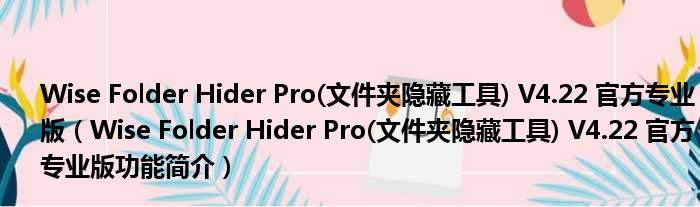 Wise Folder Hider Pro(文件夹隐藏工具) V4.22 官方专业版(Wise Folder Hider Pro(文件夹隐藏工具) V4.22 官方专业版功能简介)